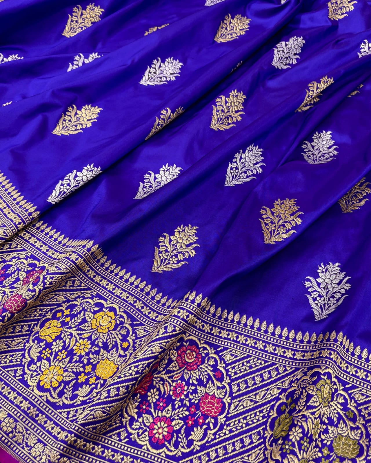 🌸 Design: Exquisite Meenakari border with classic buta motifs