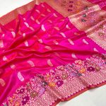 Rani pink dual shadegold zari Minakari border exquisite silver and gold zari butis