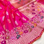 Rani pink dual shade gold zari Minakari border exquisite silver and gold zari butis