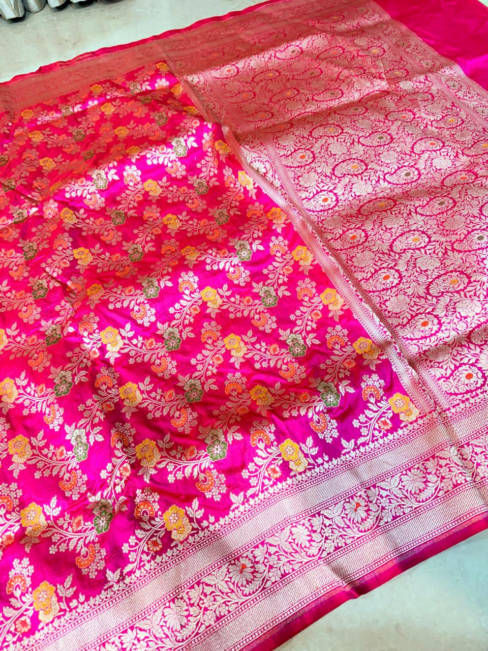 • Gold / Silver zari weaving (depending on saree)
